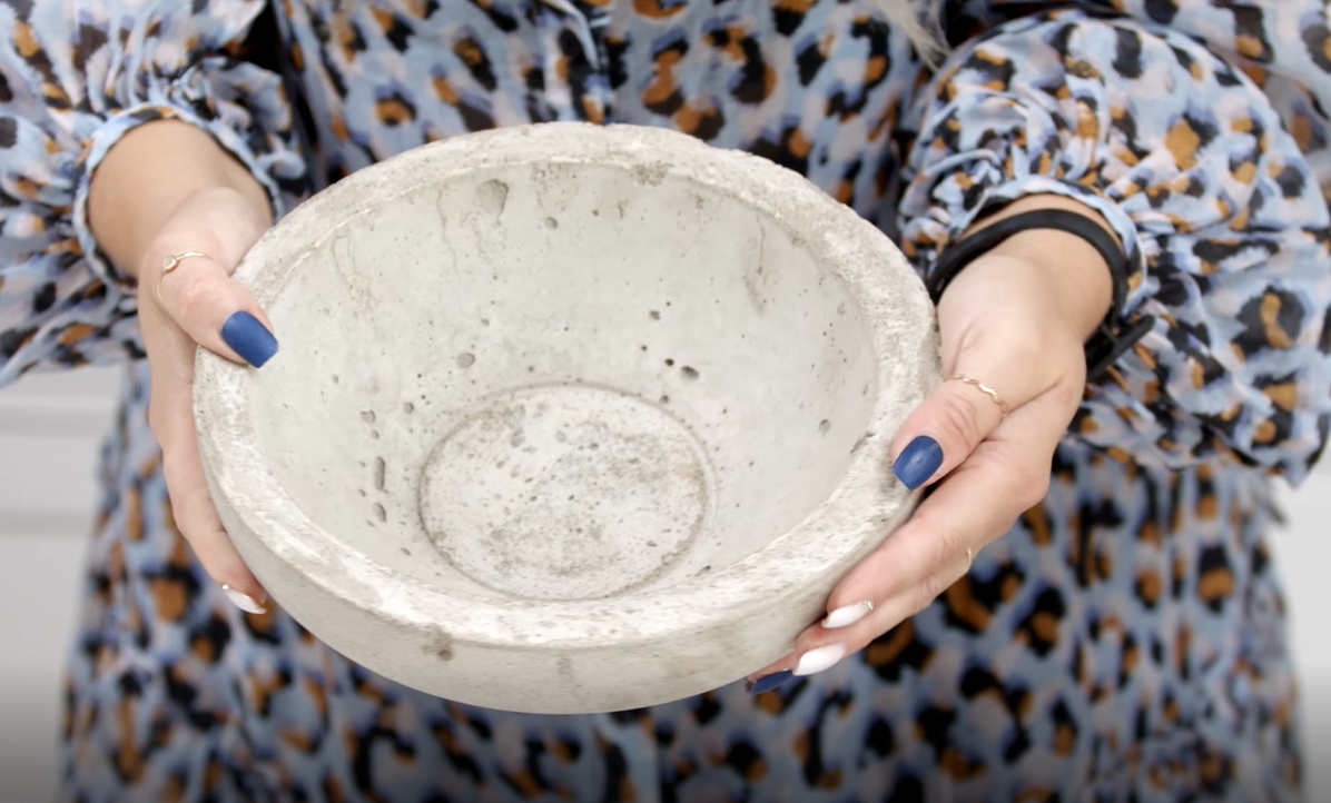 Lase kausil kuivada vähemalt 1 ööpäev. Seejärel vaata, kuidas kuivamisprotsess on kulgenud. Kui tundub, et segu on kenasti kõvaks vormunud, võta esmalt ära sisemise kuju andmiseks olnud väiksem kauss. Seejärel keera betooniga täidetud kauss tagurpidi ja katsu kerge koputamisega ka vormiks olnud välimine kauss eemaldada.