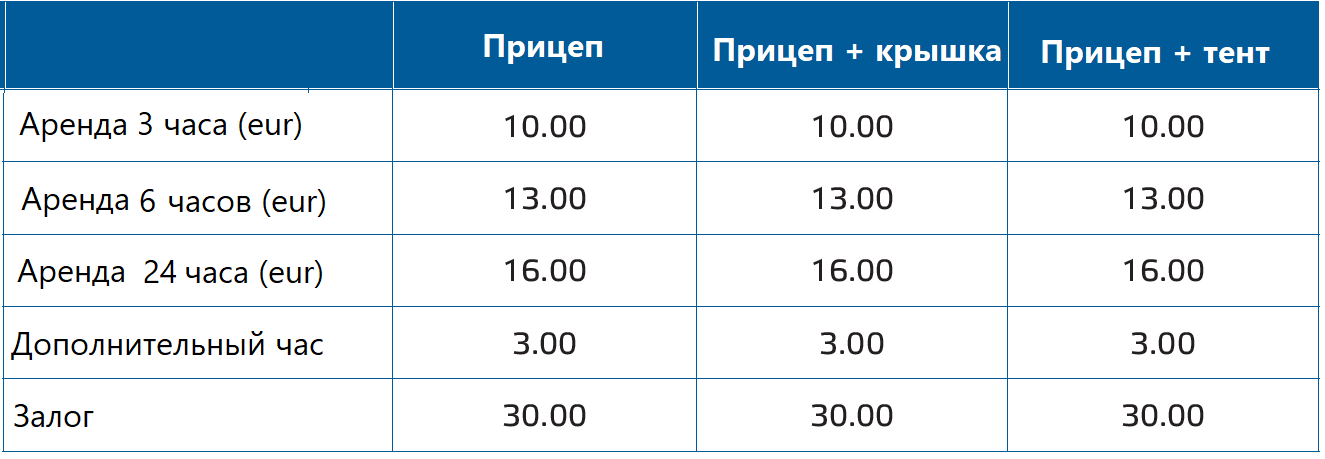 * Прицеп без крышки и с крышкой доступны для аренды только в магазинах Ehituse ABC в Таллинне (Peterburi tee 71, Pärnu mnt. 186 ja Kadaka tee 65).