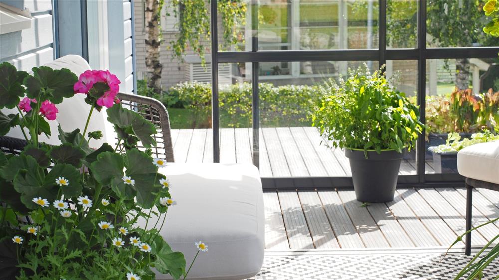 - Для отделки террасы выбирайте преимущественно пасмурную погоду, чтобы солнце не нагревало поверхность слишком сильно.После того как поверхность высохла, можно начинать пропитку террасы маслом. Новое масло на водной основе для мебели и террас Tikkurila Valtti Plus Terassiöljy, помимо защищающих от ультрафиолета веществ, содержит в своем составе также специальные пигменты. Они глубоко впитываются в дерево и защищают его еще лучше от влаги, выгорания и растрескивания.