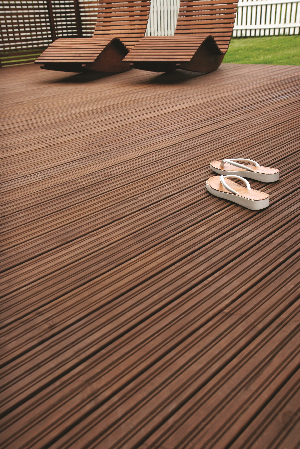 Чтобы терраса служила как можно дольше, нужно ухаживать за ней в зависимости от расположения либо каждый год, либо каждые два года – так, как требует ее состояние. Терраса на южной стороне требует более частого ухода, поскольку солнце обесцвечивает здесь поверхность дерева, пропитанного маслом быстрее, чем на северной стороне здания.